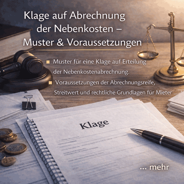 Die Klage auf Erteilung der Nebenkostenabrechnung steht häufig im Zusammenhang mit weiteren Fragen zur Abrechnungsfrist, zur Belegeinsicht sowie zu möglichen Folgeansprüchen nach Erteilung der Abrechnung.